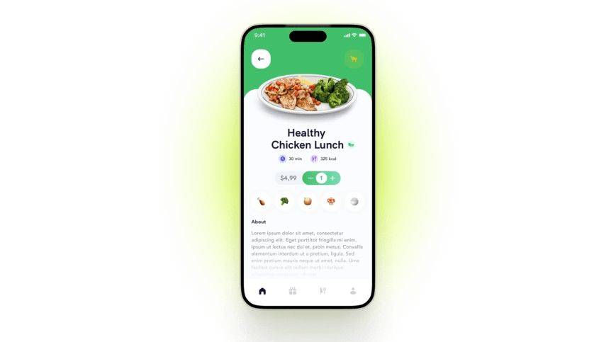 Menu exploration. Customers can view the menu and information about dishes, add dishes to their basket, leave comments for their order, and schedule a delivery for a specific day and time.