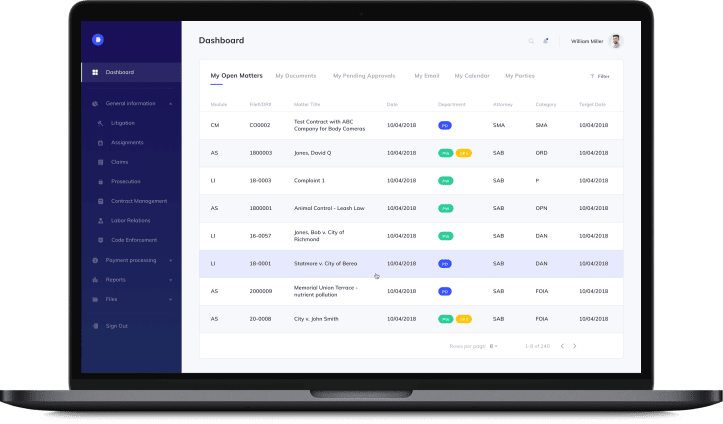 A legal case management system designed to meet the needs of government law offices including case and contract management, document management, time management, claims and payment processing, billing, and much more.