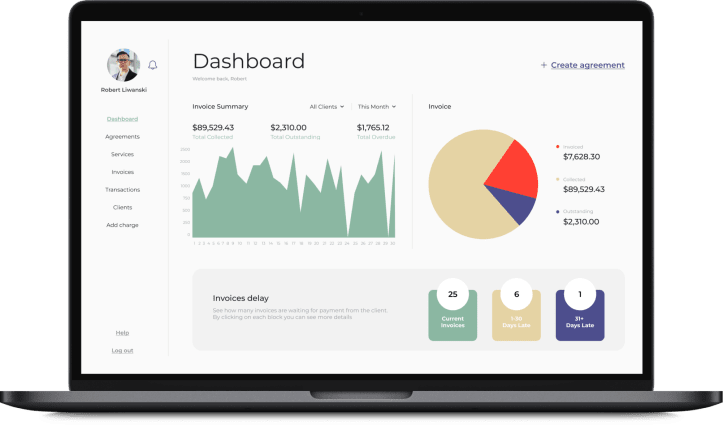create, edit, and send agreements to clients; send reminders about pending agreements; terminate agreements