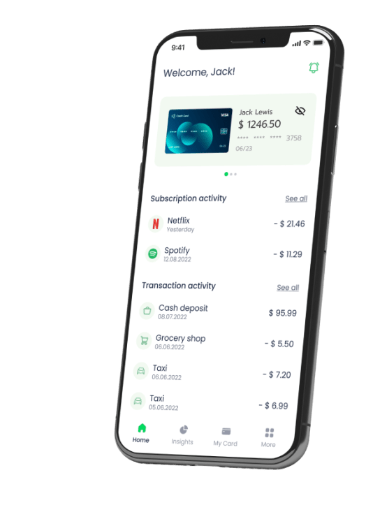 In the mobile client application, users can link their bank accounts, check their expenses, and pay and keep track of recurring bills while building their credit history. Here are the features for this module:
