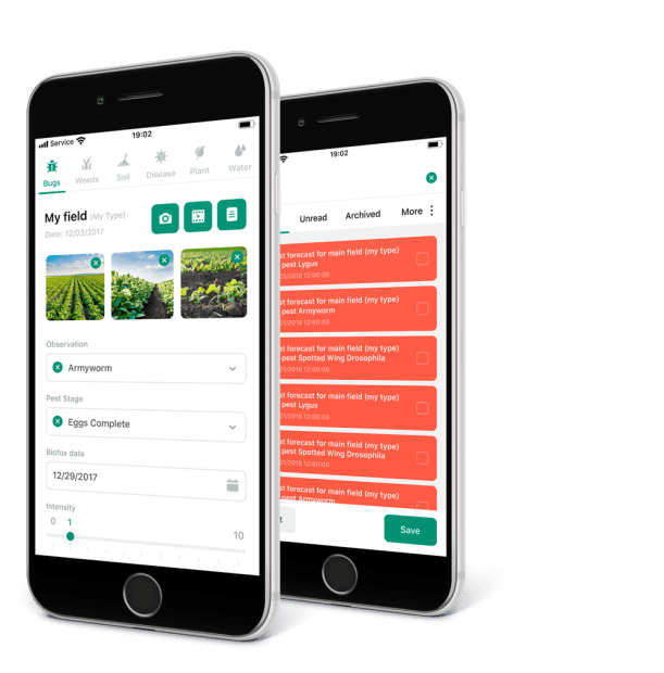 Web and mobile applications for farmers to take care of their yield crop, see predictions on pests, weather forecasts for a specific field, accept notifications on pest danger.