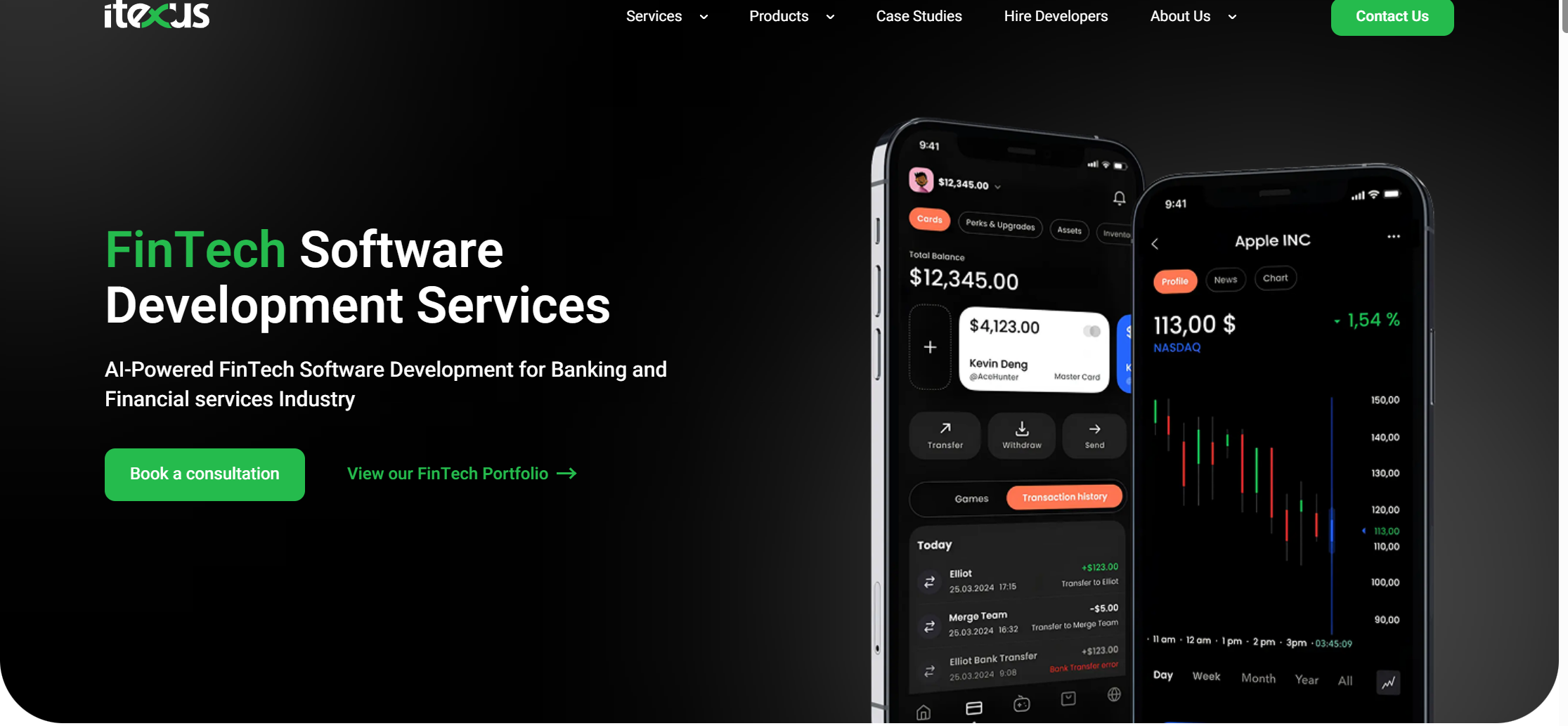 Core services: Custom banking app development, digital wallets, fintech software, open-finance APIs, payment gateway integration. Itexus+1