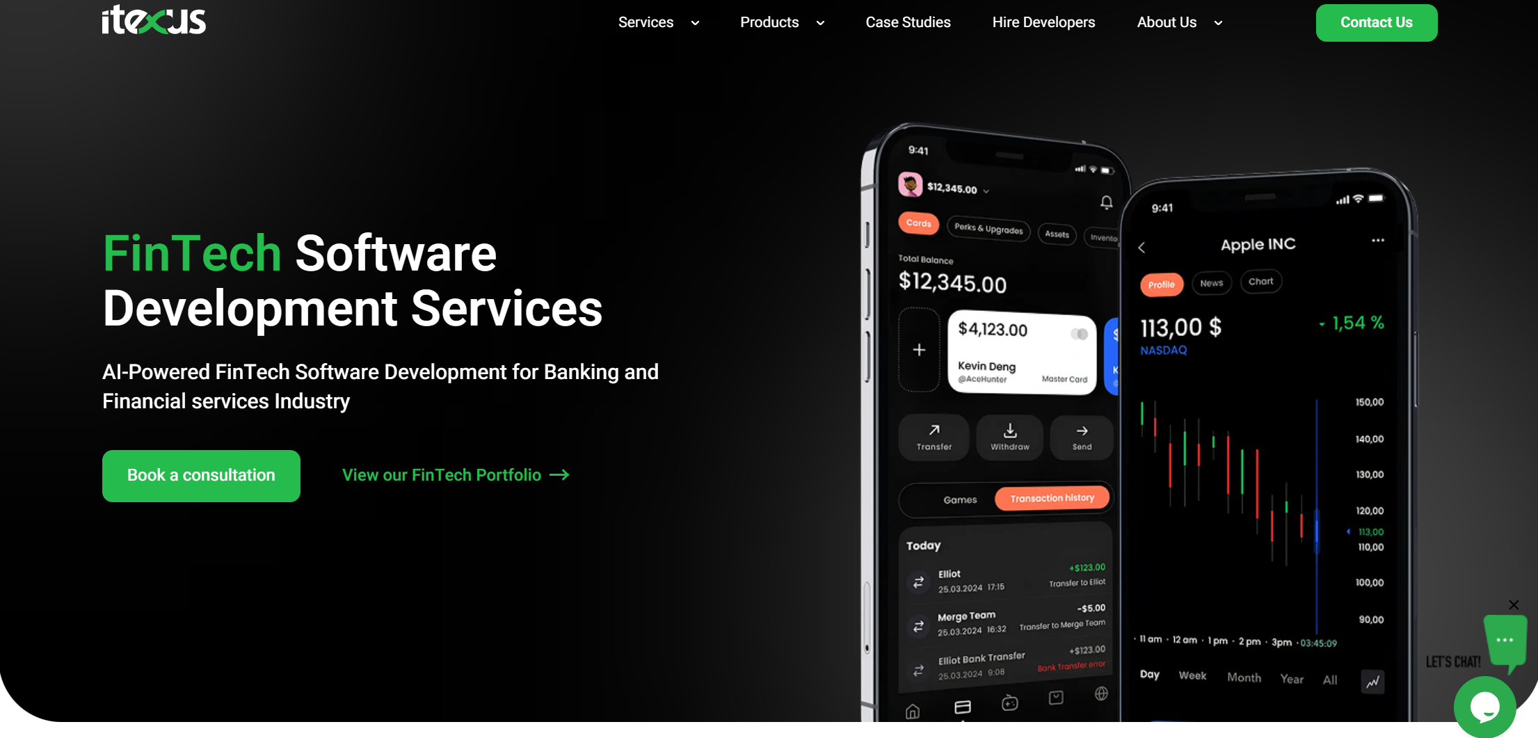 Itexus | Serves NY from U.S. office | Custom exchanges and wallets | Contract-tested integrations, audit evidence, payment gateway integration | Mobile apps, fintech app development, banking app development |